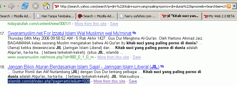Saudara Harry Sufehmi telah melakukan proses pencarian melalui archive.org dan google.com, namun database dalam website-website tersebut telah diupdate, sehingga tidak menunjukkan penyebutan Al-Qur’an sebagai Kitab paling porno sedunia.
